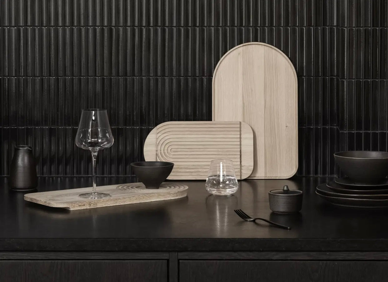 La planche peut être utilisé des deux côtés et combine ainsi la fonction d'un plateau et d'une planche à découper à pain en un : lors de la découpe du pain et des petits pains, les miettes sont recueillies dans les rainures. Une fois retourné, le plateau présente un bord légèrement surélevé, ce qui souligne sa fonction en tant que plateau de service élégant.